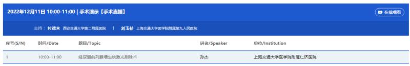 手術演示直播時間:2022年12月11日 (周日) 10:00——11:00