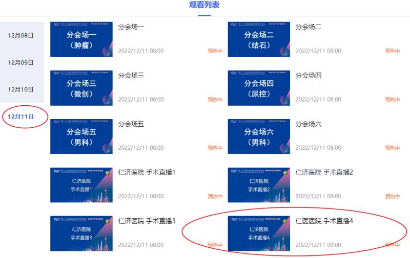 直播分會場頻道:上海仁濟 手術直播4(頻道右側欄,第6位置)